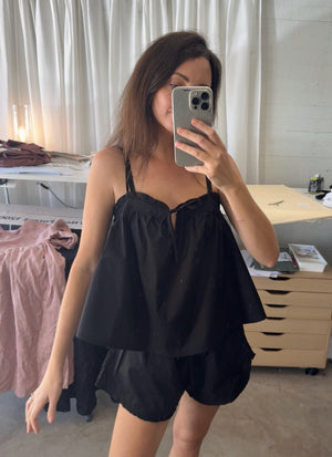 Crafted from 100% GOTS-certified organic cotton poplin (OEKO-TEX® certified) fabric made to hold its shape wear after wear, our shell top is soft yet crisp and breathable. Perfect for warm days, slow mornings and night wear.