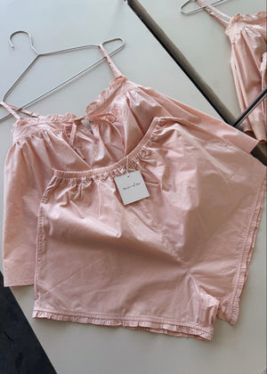 Crafted from 100% OEKO-TEX®cotton poplin fabric made to hold its shape wear after wear. Our frill shorts are soft but crisp, breathable and designed for comfort. Perfect for warm days, slow mornings or night wear — high waisted with an easy pull on elastic waist band and practical pockets for everyday wear.